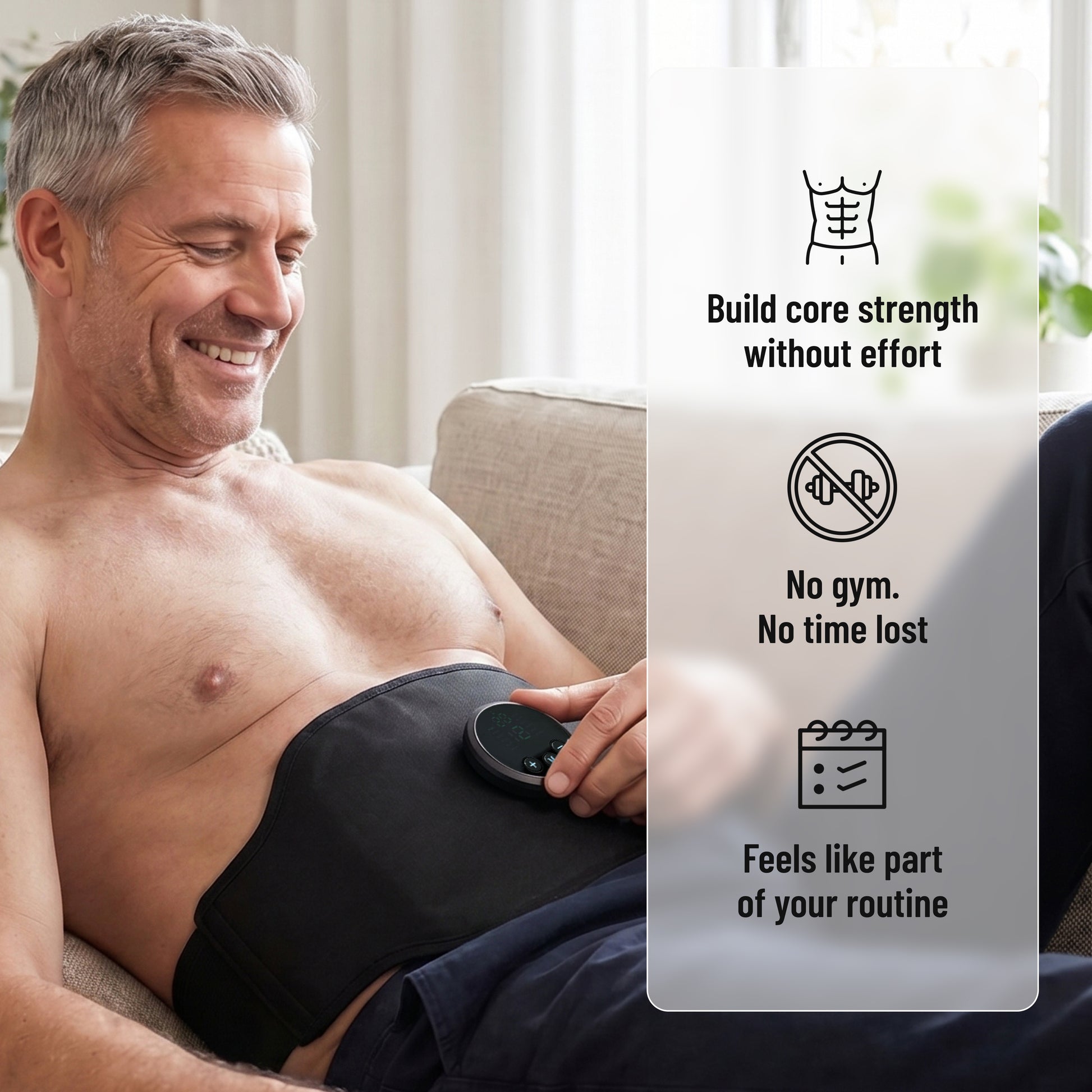 Activates your arms, core and lower back automatically with strong contractions you can feel from the first session.